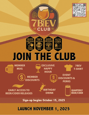 Your all-access pass to the best of Ale & Cider House, Queen Orchard Hard Cider, 7Bev Brewing, and Queen Orchard Farm & Cidery.